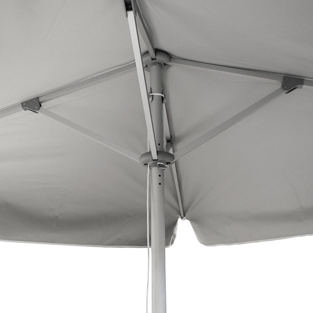 Materiál: Slunečník využívá vysoce kvalitní potisky na polyesteru 175g, odolné vůči povětrnostním podmínkám a s certifikátem požární odolnosti B1.