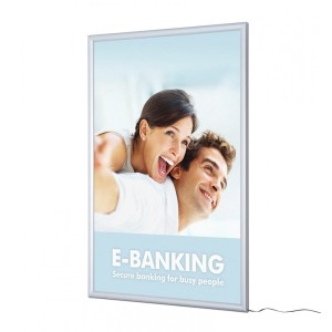 Podsvícení je rovnoměrně rozloženo po celé ploše plakátu díky použití LED podsvícení po okrajích. Světlo má neutrální teplou barvu s teplotou 5000K. To vše zajišťuje, že obsah umístěný v podsvíceném rámu bude vypadat skvěle.