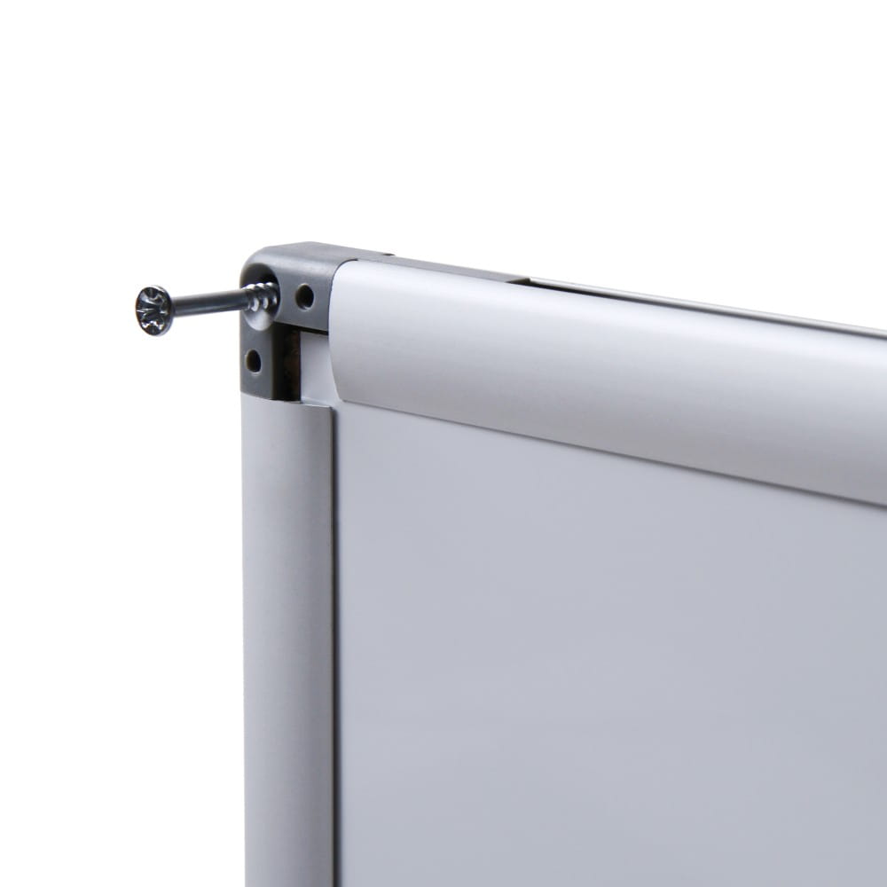 Elegantní a moderní magnetická suchoštěrací tabule SCRITTO® má rám vyrobený z eloxovaného hliníku s rohy vybavenými montážními otvory, které jsou navíc esteticky chráněny plastovými krytkami. Bílá tabule jako psací plocha v magnetické suchoštěrací tabuli SCRITTO® je vyrobena ze smaltované oceli – po ní se snadno píše i čistí.