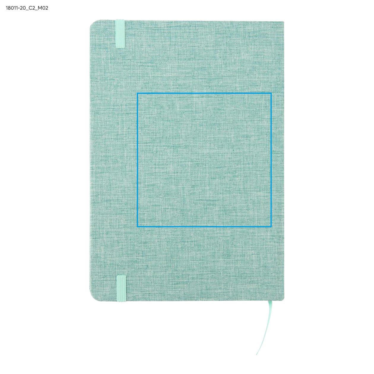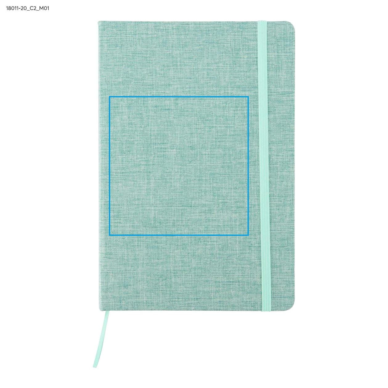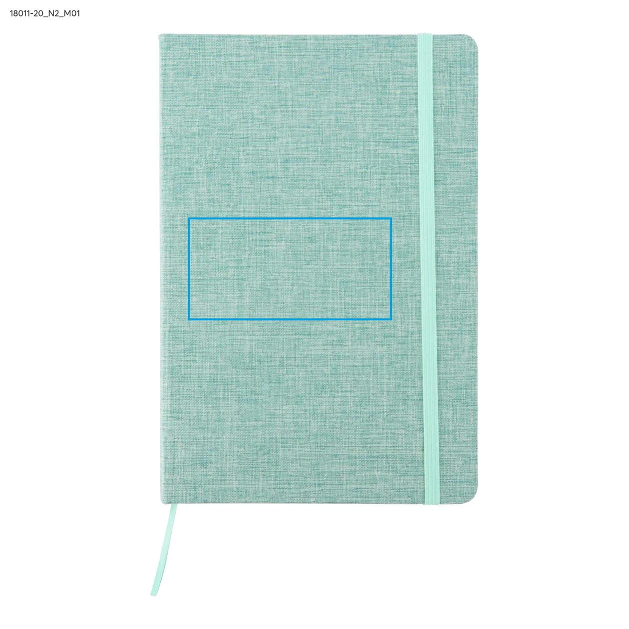 Notes z recyklované bavlny BIVELLO A5 světle zelený s potiskem loga