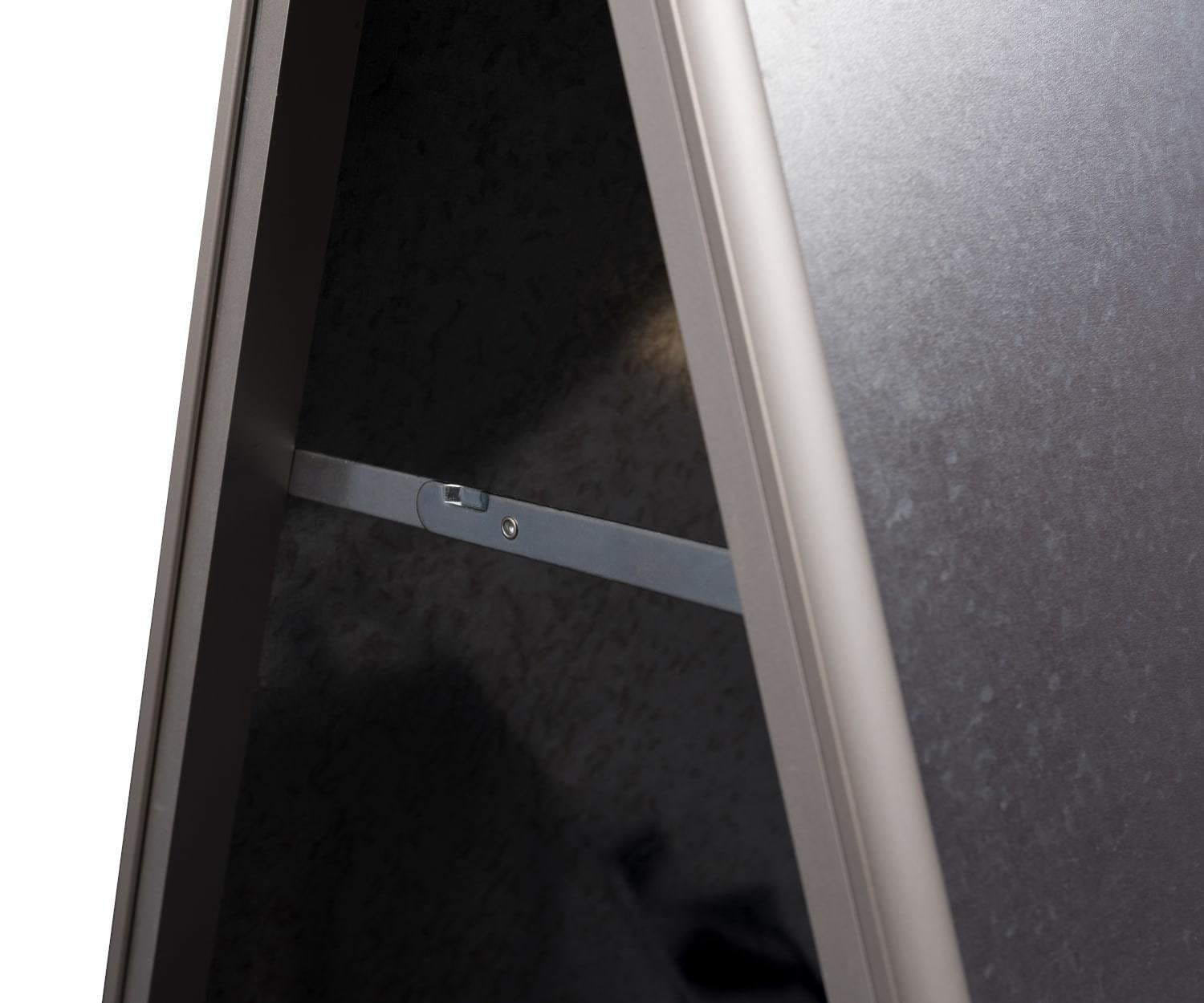 Oboustranný reklamní stojan B1 OWZ Butterfly - stříbrný reklamní stojan se západkovým rámem OWZ