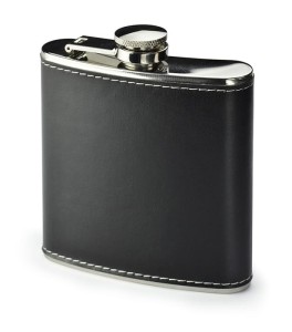 Stylová placatka vyrobená z nerezové oceli, dokončená PU ekokůží o objemu 6 oz (přibližně 177 ml). Logo vygravírujeme na placatce.