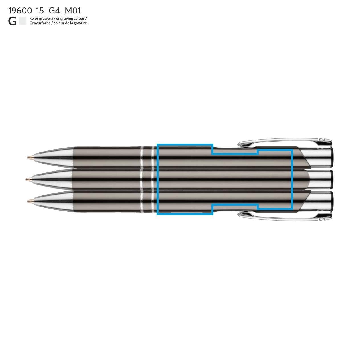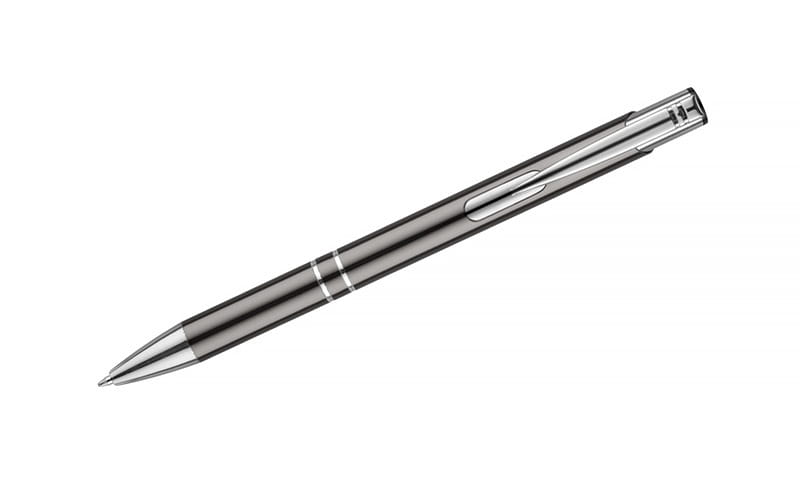 Hliníkové tělo propisky KOSMOS je ozdobeno dvěma stylovými kroužky, které jí dodávají charakter a eleganci. Propiska je dostupná v grafitové barvě, což ji činí vhodnou pro různé styly a příležitosti. Pohodlný úchop a vhodná hmotnost zajišťují, že psaní je potěšením a propiska skvěle padne do ruky, což je velmi důležité při dlouhodobém používání.