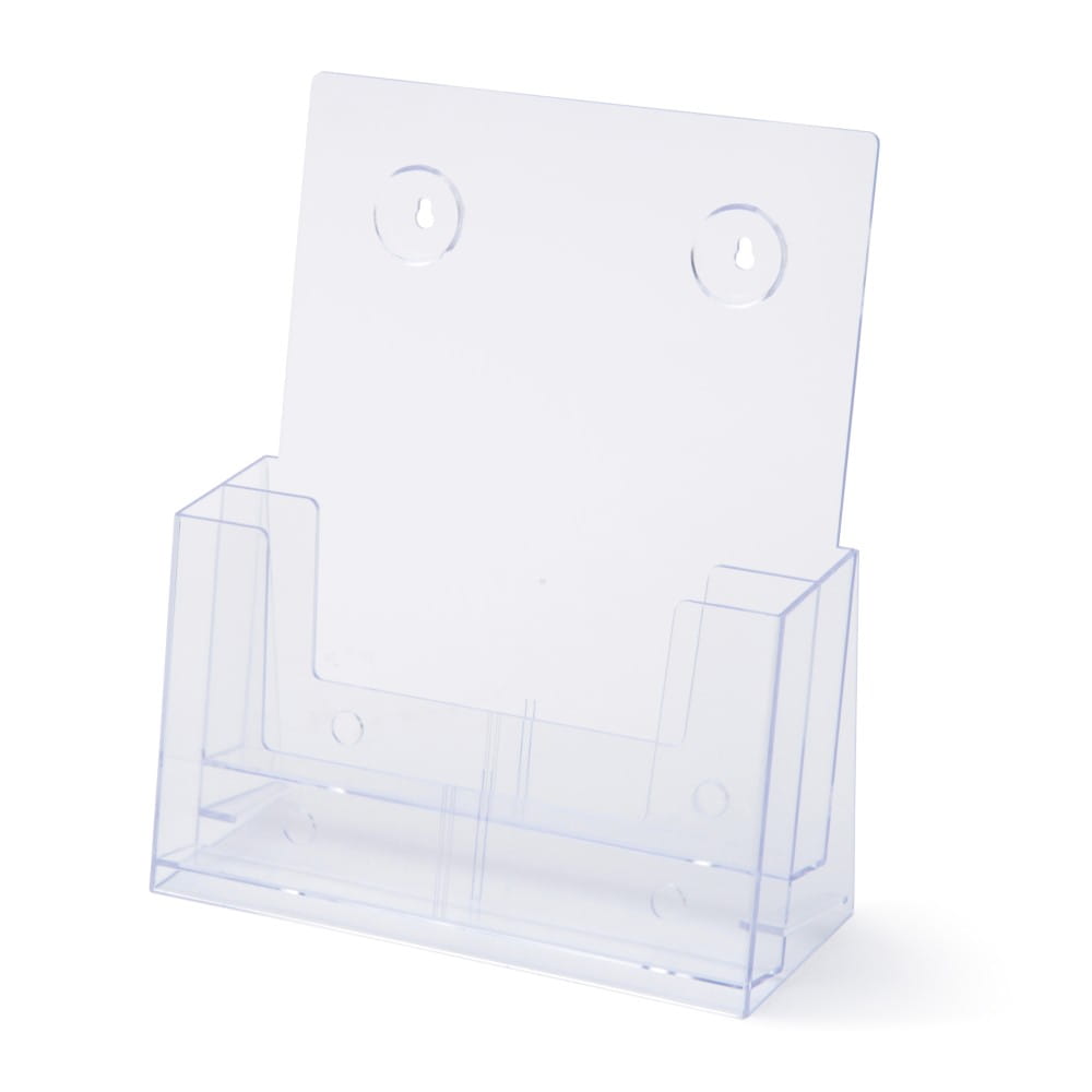 Velmi praktický a univerzální stojan na brožury, do kterého můžete vložit brožury nebo prospekty. Stojan na brožury je vyroben z vysoce kvalitního transparentního polystyrenu. Je vyroben vstřikováním, tedy tvarováním, což zaručuje velmi kvalitní povrchovou úpravu a 100% opakovatelnost každého kusu stojanu.
