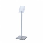 Elegantní hliníkový sloupek ve stříbrné barvě má pevnou obdélníkovou základnu, která zajišťuje úplnou stabilitu a možnost nastavení polohy stojanu v místnosti.