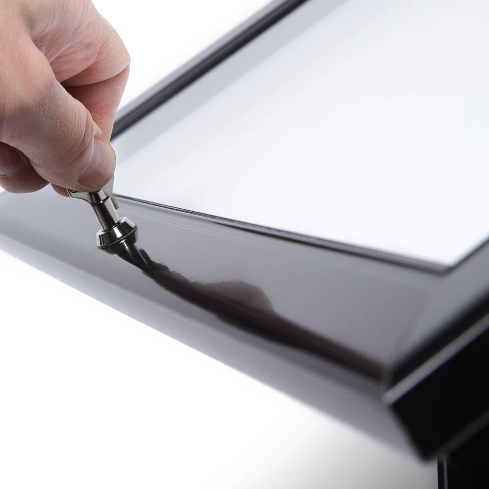 Zamykatelná vitrína na menu chrání obsah před přístupem neoprávněných osob. Toto je nezbytné a bezpečné řešení při použití stojanu venku.