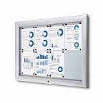 Snadné otevírání a připínání obsahu: Vitrína se otevírá zdola, v maximálním úhlu náklonu až 55 stupňů, což usnadňuje přístup k obsahu. Navíc u větších rozměrů od 12xA4 má otevírací mechanismus speciální plynové tlumiče, které zajistí plynulé otevírání. Kovová zadní stěna umožňuje snadné připínání obsahu pomocí magnetů.